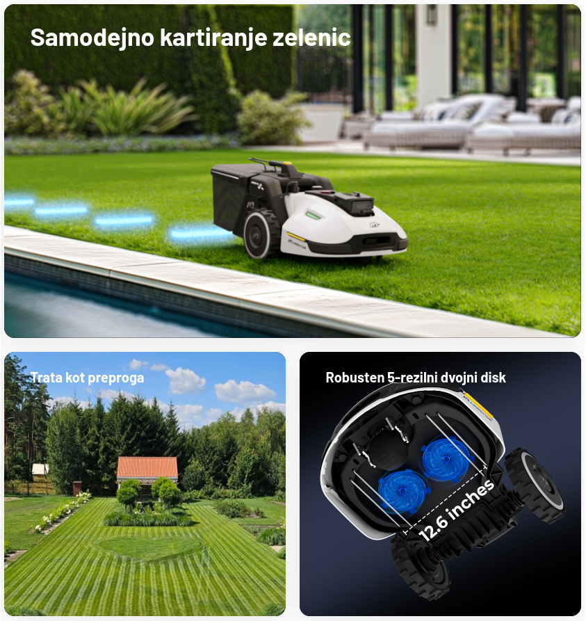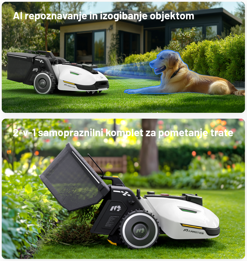 Yuka 3000 predstavlja inovacijo med robotskimi kosilnicami, saj prinaša 2v1 funkciji. Z opcijskim košem postane tudi vaš pometač listja, odpadkov, pokošene trave, plevela ter želoda in vejic do 3,5 cm, ki pobrano vsebino prazni na vnaprej določena mesta.